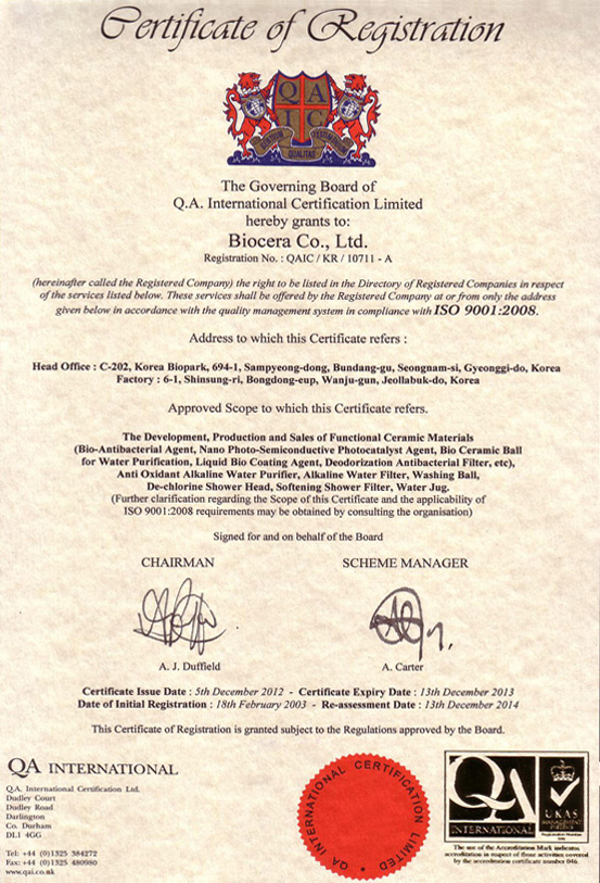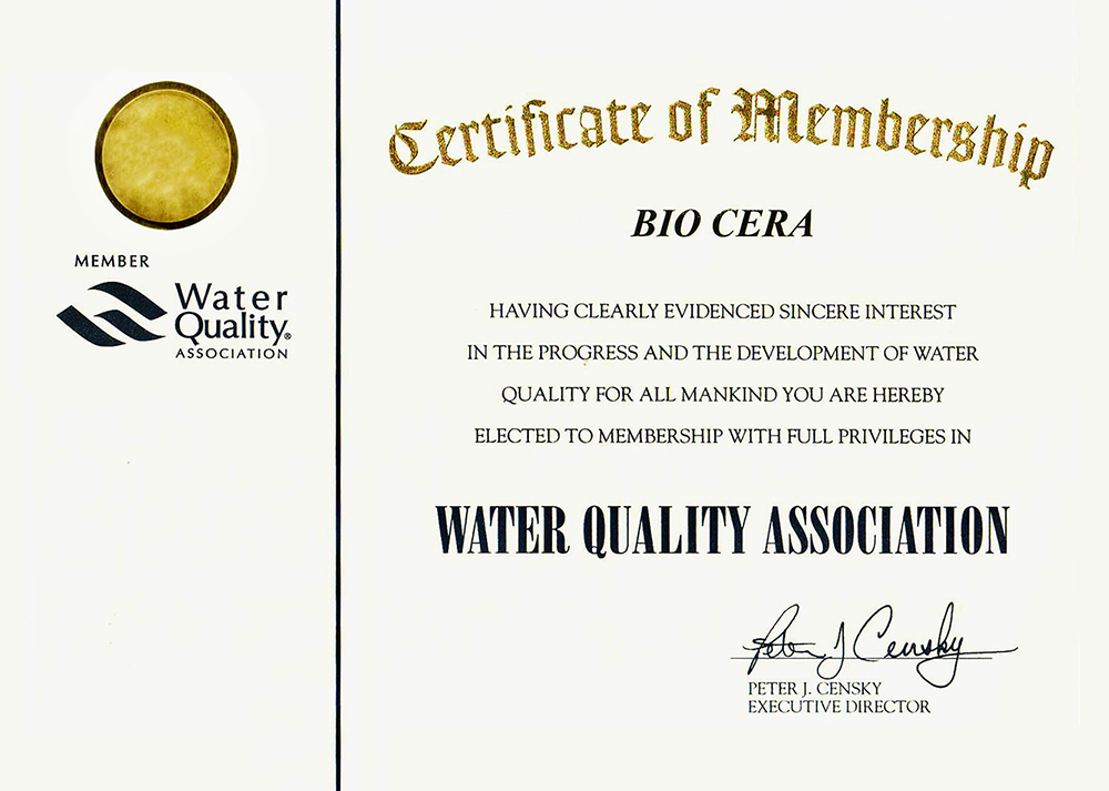 WQA – международная ассоциация по контролю качества воды, основанная в 1974 года. Biocera – является членом организации и поддерживает исследования, направленную на